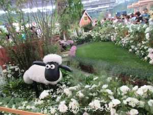 さまざまなアイデアや要素が凝縮されたマークさんのアニバーサリー・ガーデンのあちこちに登場するのが、イギリスのアニメーションの主人公「羊のショーン」です。大小いくつものショーンが庭を楽しくまとめあげています。