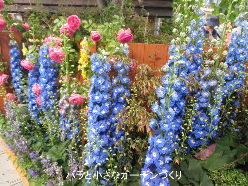 青×黄色×ピンクという、華やかではあるけれど、チャレンジするには勇気のいる色合わせの一角もありました。色の分量や花形の取り入れ方を、ぜひ見習いたいものですよね。
