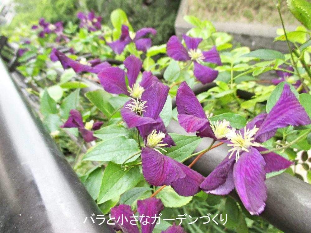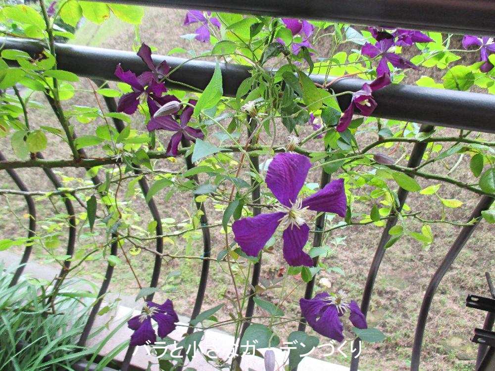今年の国際バラとガーデニングショウで購入したクレマチス「エトワール・ヴィオレット」の2番花が満開になりました! 一緒に誘引してあるアンジェラは終わってしまったけれど、こちらは四季咲きなんですよね。ちょっと寂しくなってしまったベランダの現在、唯一の彩りです^^
