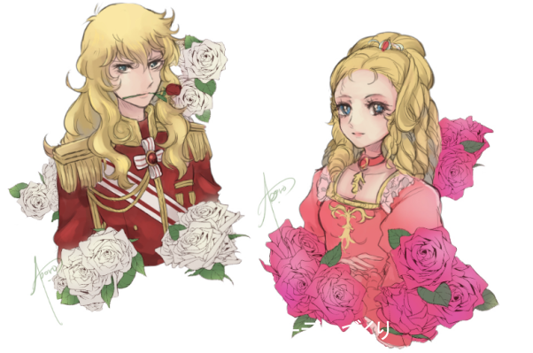 ▲「ベルサイユのばら」登場人物オスカル(左)と、マリーアントワネット(右)