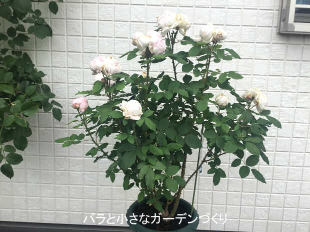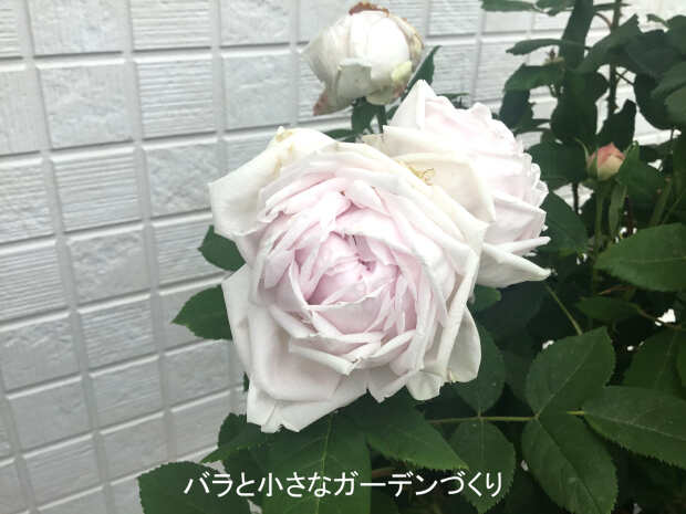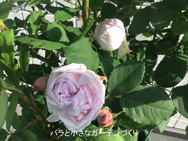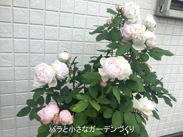 花径7cm。薄いピンクの巻き巻き咲きで、濃厚なダマスクの強香が漂っています。昨夜の嵐の影響はなかったようなので、ホッとしています。