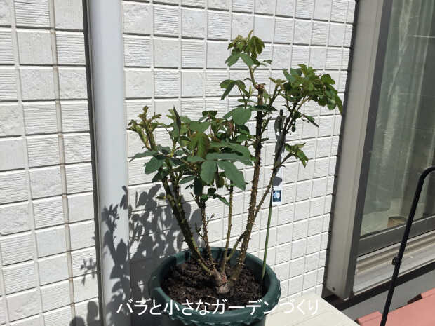 冬場の用土替えと有機質肥料(バットグアノ5:油カス5)の施肥は済ませてあります。鉢は10号プラ鉢を使用。剪定は、樹高120cmから45cmに強剪定。細枝もすべて残しています。
