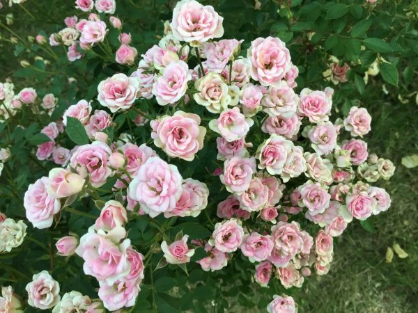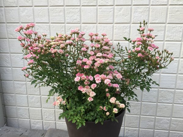 花径1cmほどの極小輪ミニバラ「ワンダーファイブ」は、気温の低いときにはピンク、高温期には白に発色する房咲きタイプのミニバラです。