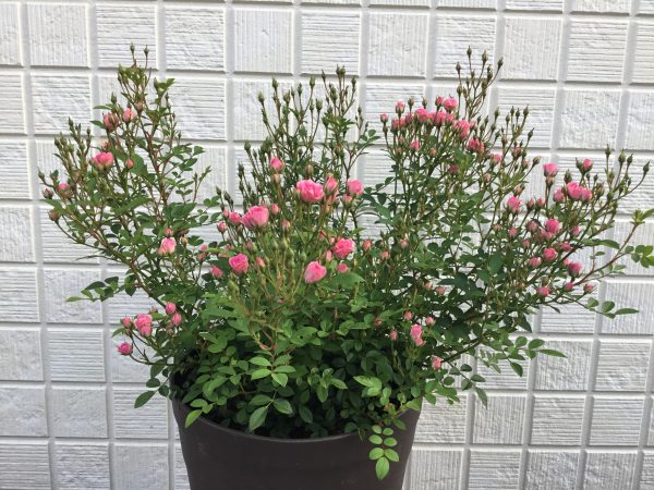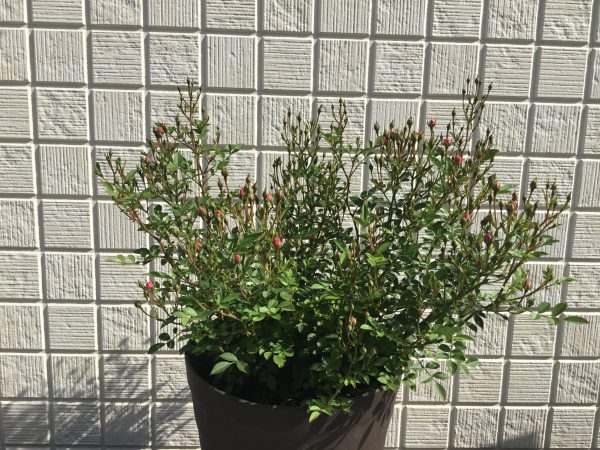 去年は少しウドンコ病にかかりましたが、薬剤散布のおかげか株に体力がついたおかげか、今年はウドンコ病なしで嬉しいです! 株を覆い隠す勢いで無数のつぼみが上がってきました。樹高は25cmほどです。