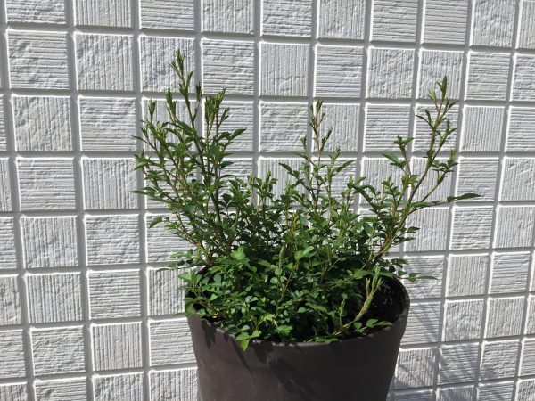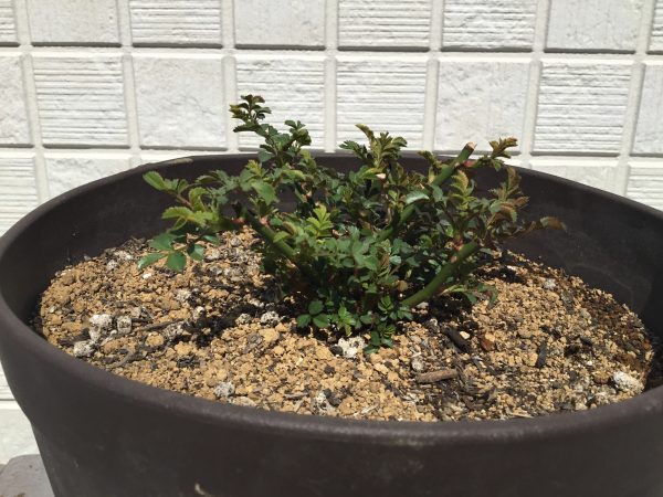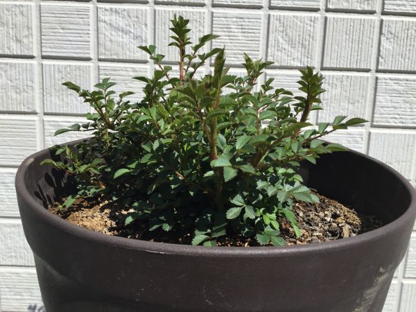 昨年末にオリジナル・ブレンドの培養土で8号プラ鉢に植え替え。去年育ててみて強健すぎるほど強健で暴れるほどだと感じたので、株元から5cmくらいでバッサリ切り詰める強剪定をしました。