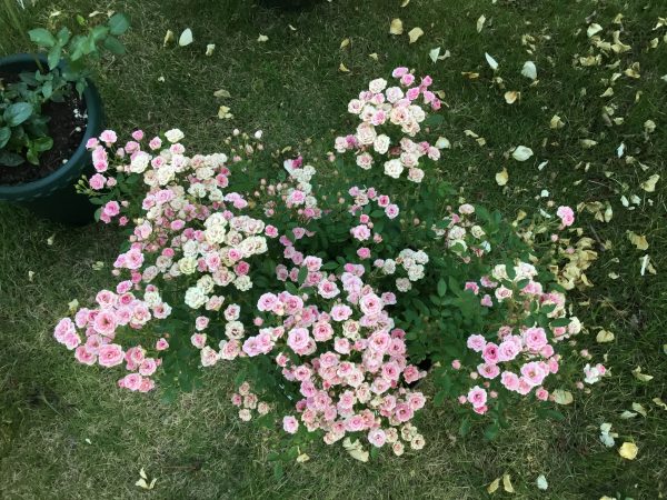 花径1cmの小さい花ですが、よく見ると、中心がピンク色で外側にいくほど白くなる花びらの色合いが「ピエール ドゥ ロンサール」のようで、とても可愛らしいです。