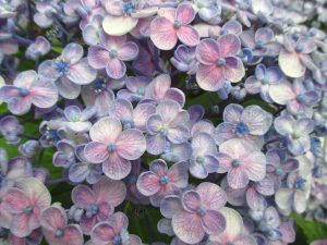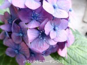 1、こちら、もともと青いアジサイを弱アルカリ性土壌で育てたので、中心が青でまわりが紫という不思議な色合いになったアジサイです。なかなかステキに咲いてくれました。これをドライフラワーにして残したいと思います。