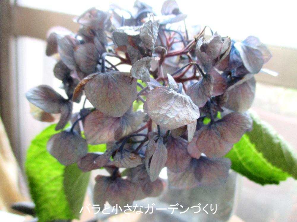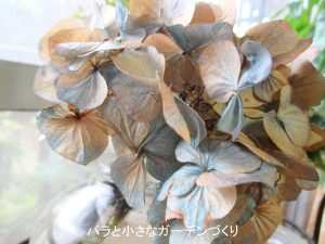 来年の花は咲かせたい、でも秋色アジサイのドライフラワーも楽しみたい。