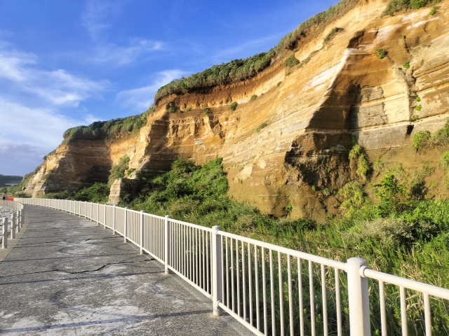 ▲「関東ローム層」が見られる千葉県・屛風ヶ浦の地層