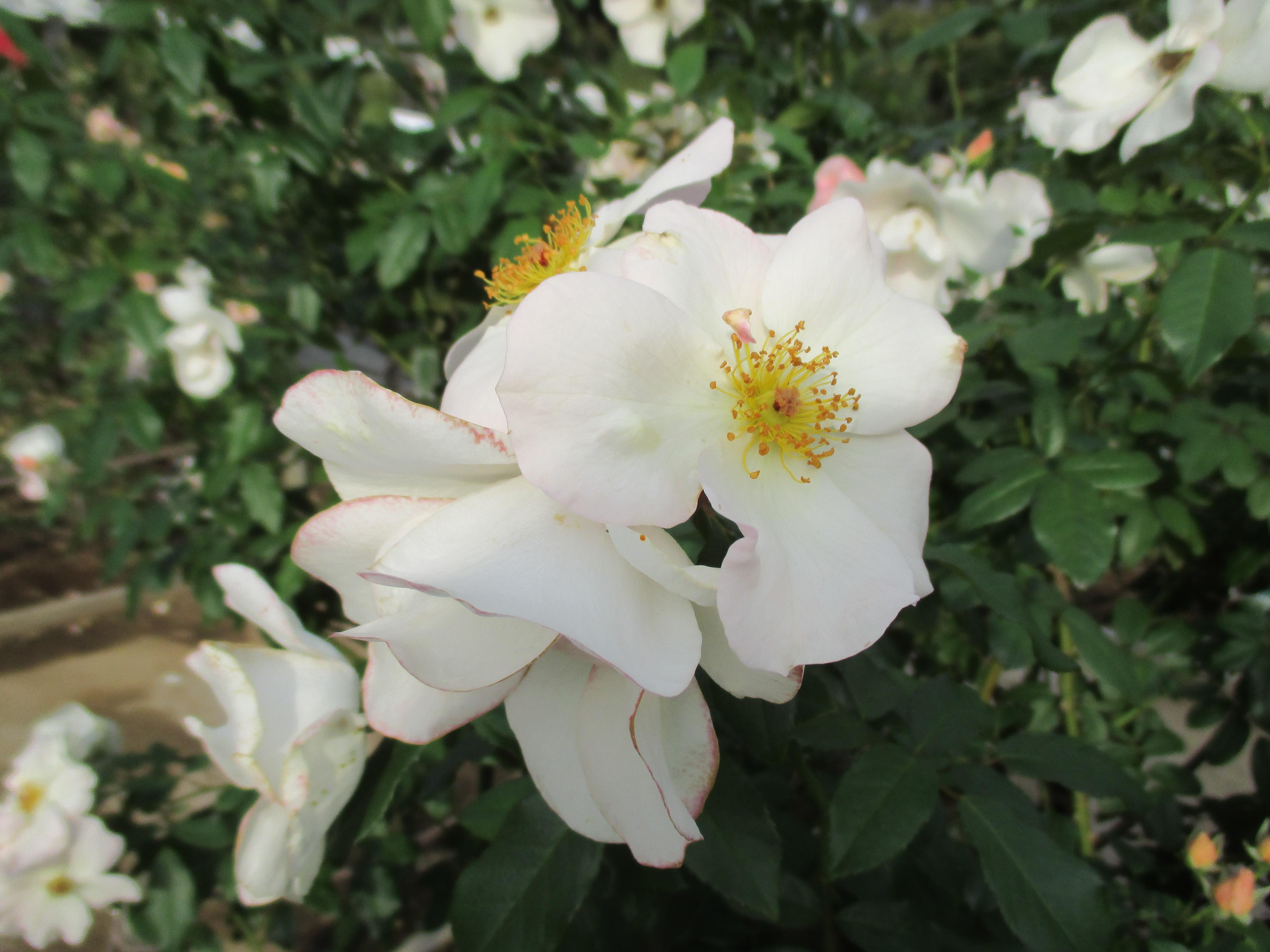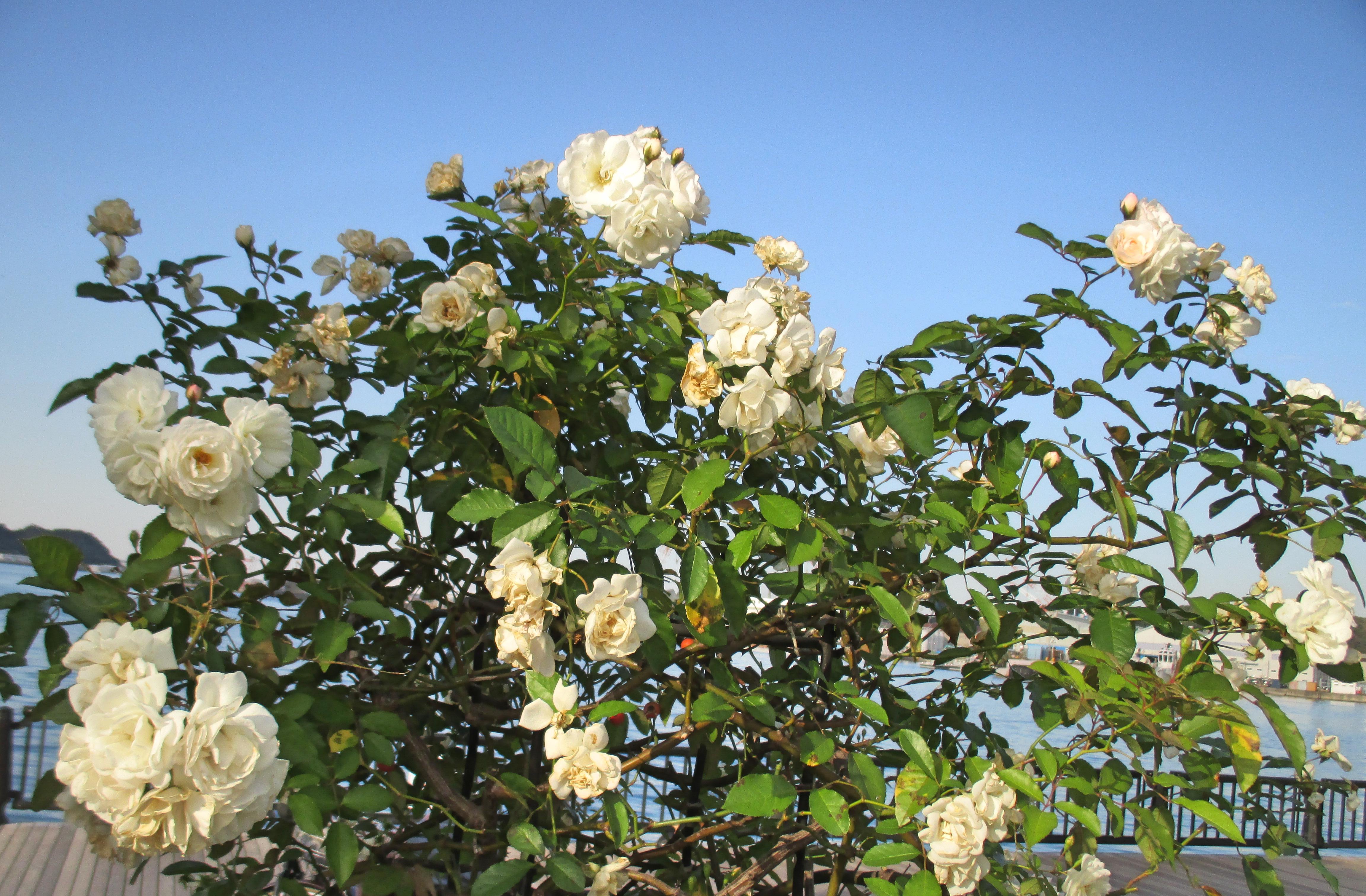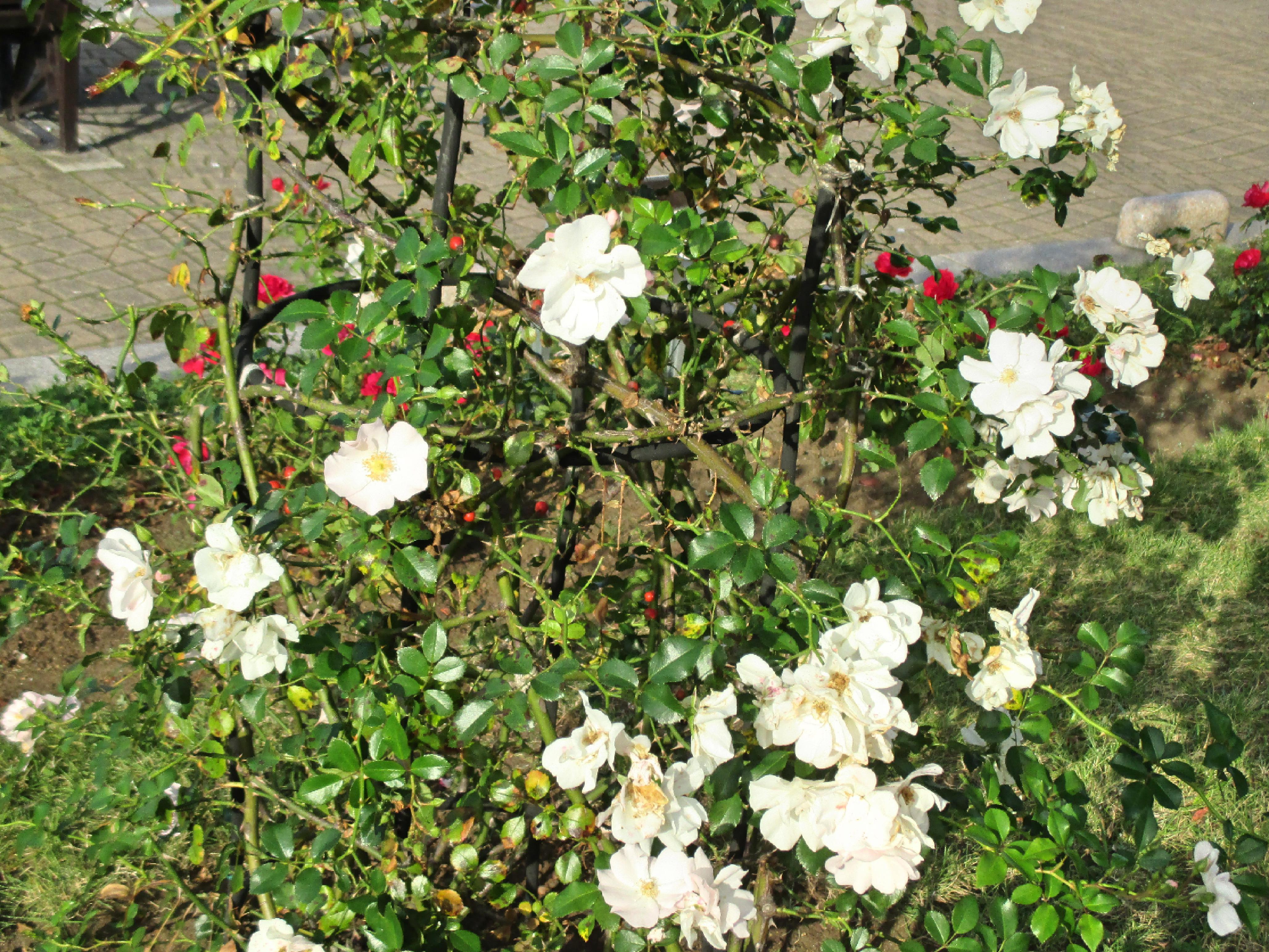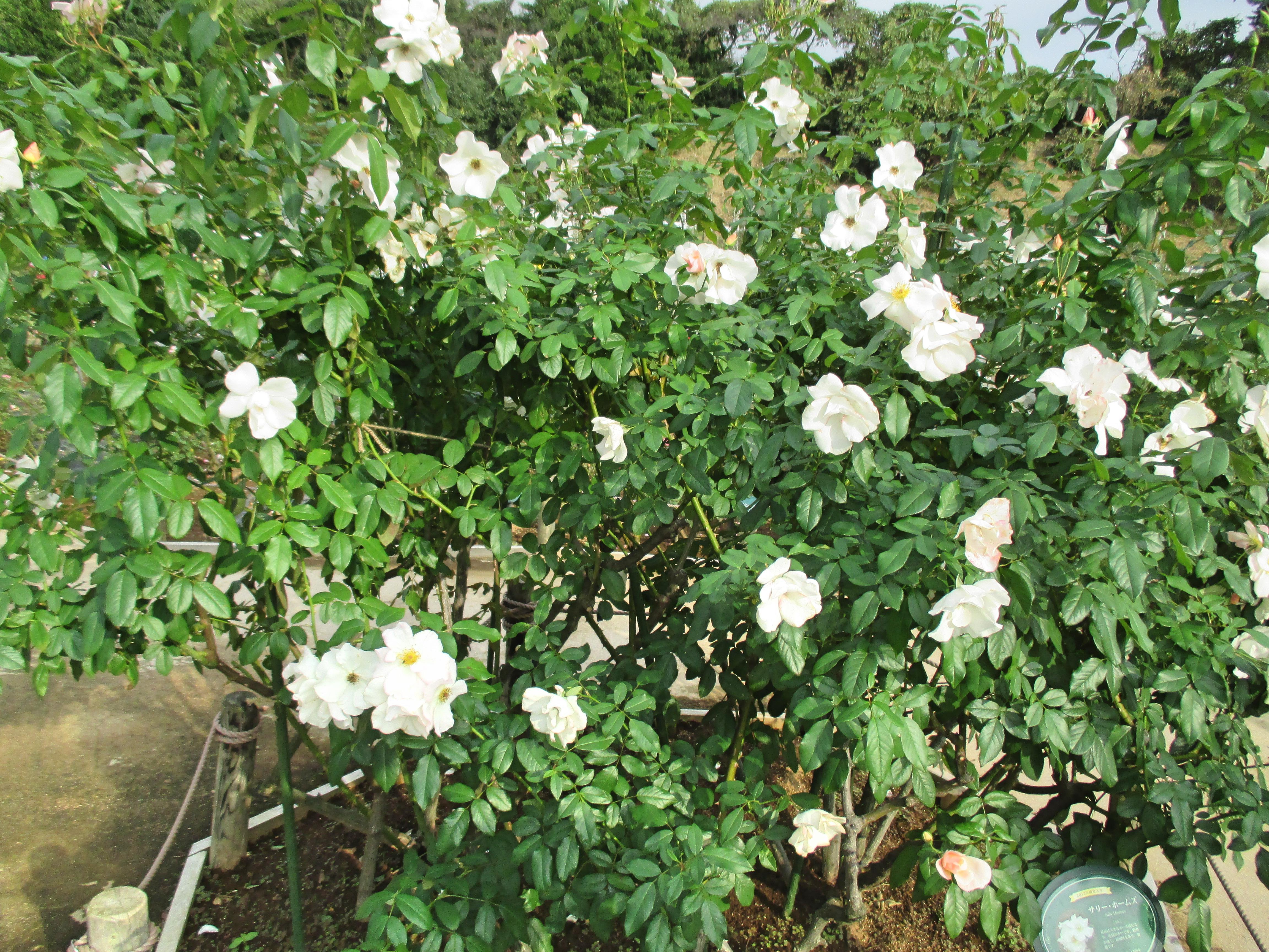 数輪咲いていた品種は、カクテル(モダン・シュラヴ)、つるクイーン・エリザベス(クライミング)、ジャスミーナ(クライミング)、ナエマ(クライミング)、ブノワ・マジメル(モダン・シュラブ)、バレリーナ(ハイブリッド・ムスク系統-シュラブ樹形)、グラハム・トーマス(モダン・シュラブ)、ローズ・ポンパドゥール(モダン・シュラブ)、ラ・ローズ・ドゥ・モリナール(モダン・シュラブ)、まほろば(モダン・シュラブ)、フランシス・ブレイズ(モダン・シュラブ)など。