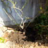 アンジェラが良く咲いてくれて嬉しい手ごたえを得たわたしですが、ご覧のとおり門柱もフェンスも取り壊され、出入口まわりが殺風景になっている信州の家の庭。雑草もボーボーです。