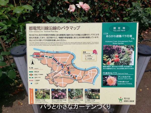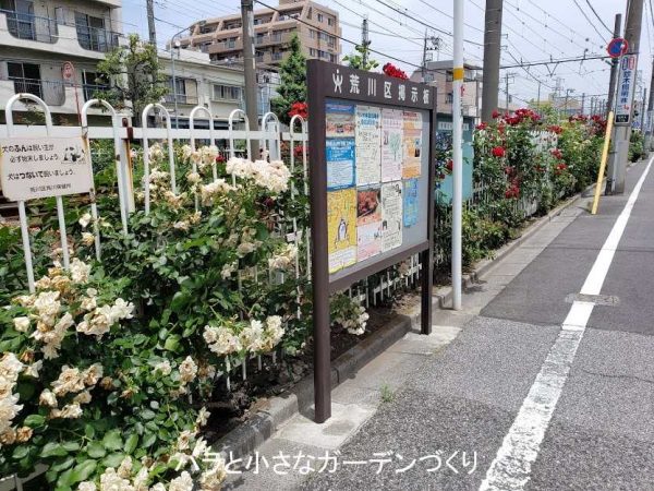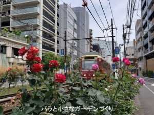 都電沿線の他に、駅周辺には5カ所の「バラ花壇」がつくられています。「荒川遊園バラ花壇」「三ノ輪橋バラ花壇」「荒川二丁目バラ花壇」「荒川二丁目南公園バラ花壇」「町屋駅前バラ花壇」の5カ所です。バラ花壇は、地元ボランティアグループ「荒川バラの会」で大切に手入れされています。