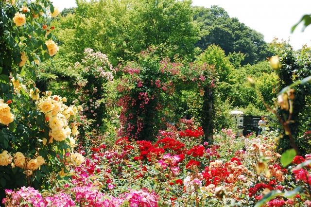 文字に書くだけでも苦労するほどの充実ぶりですね! バラの品種数も多く、仕立て方などの見せ方も多彩で、バラ好きなら必ず楽しめる公園です。1日ですべて見てまわるのは大変なほど! とても広いので、晴れた日は日傘をお忘れなく!