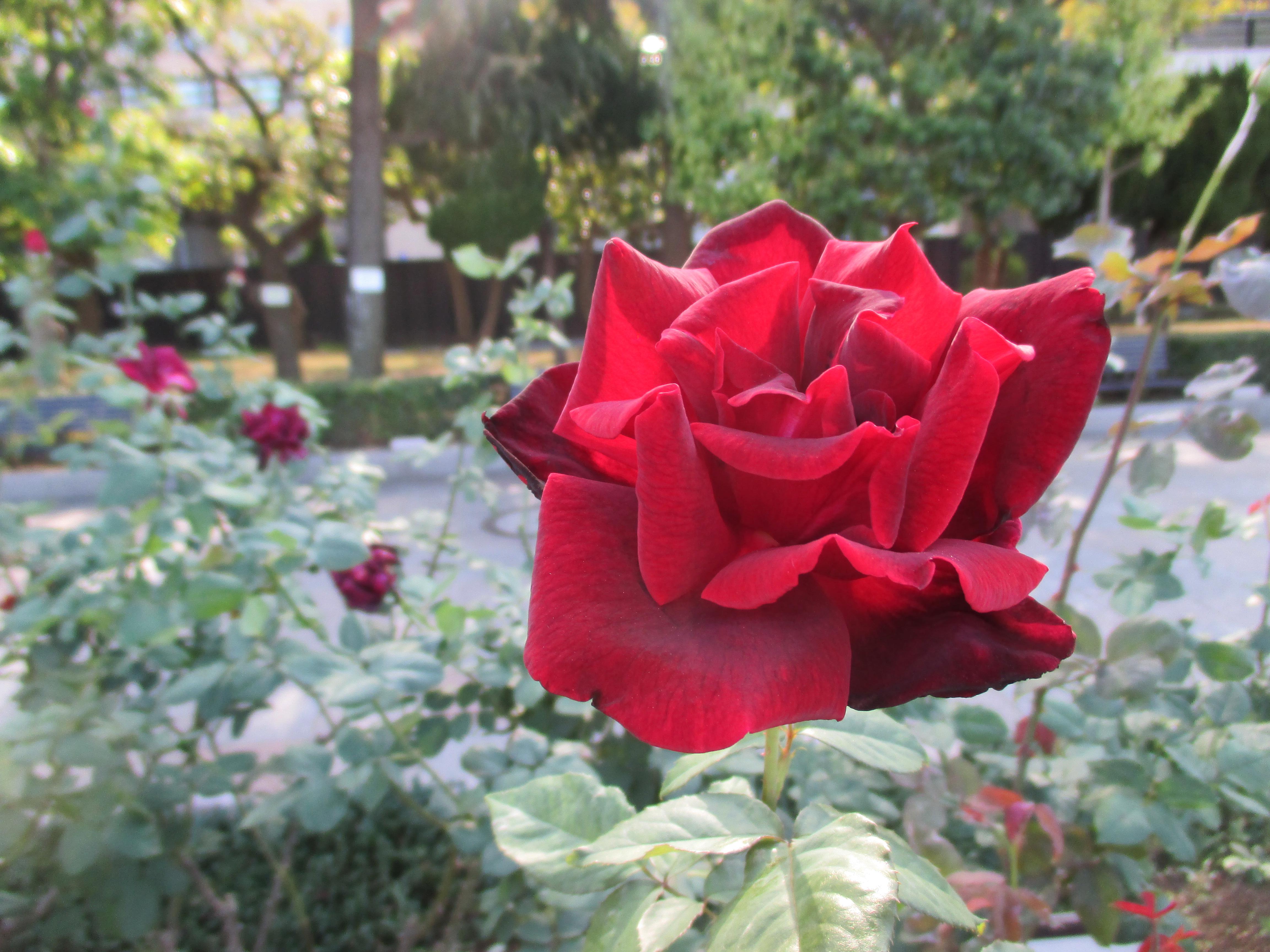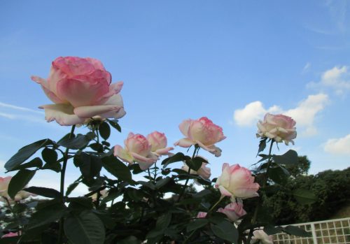 このバラが背が高くて、空に向かって咲いている雰囲気が強くでますね。いつも斜め上からばかり狙わず、真横から、下からも狙ってみると、意外な表情の写真になります。