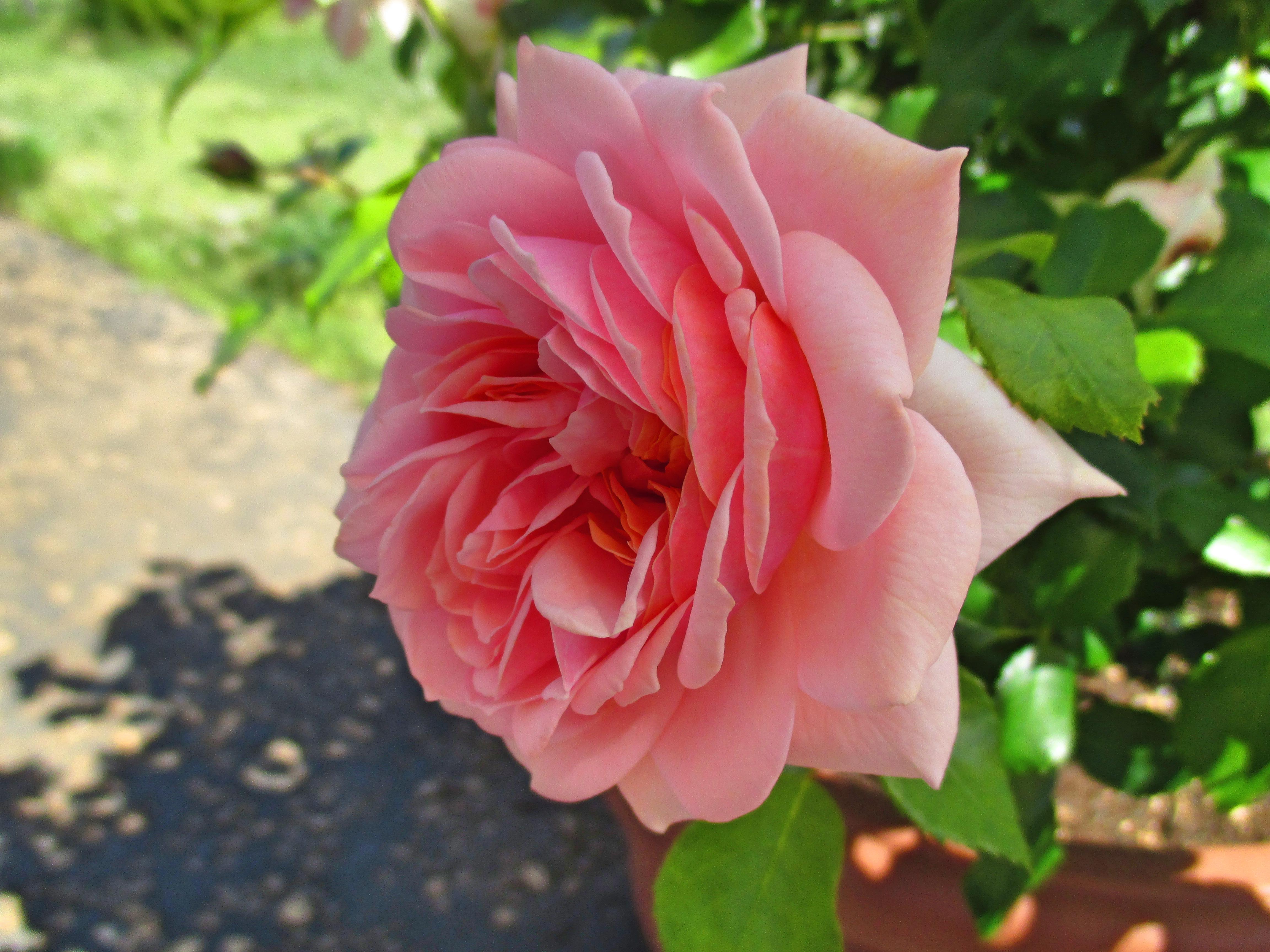 強い日差しの下では、明るいところと暗い影との差がありすぎて、真夏のようなギラついた印象の写真になります。花色もきちんと再現されません。