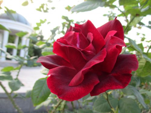 バラを撮影するときは、どうしても斜め上から狙ってしまいぎみですが、ときにローアングルからバラを見上げて撮影してみましょう。