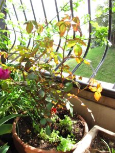 今日はバラの定点観測。我が家のベランダのバラと花をご紹介します。