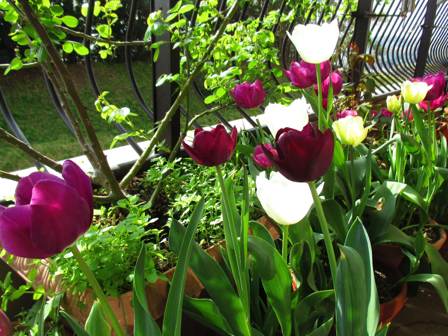 チューリップは冴えた色味がきれいで、リビングから見えるベランダの雰囲気が一気に華やぐので大好きです。最近では、咲く時期をそろえた球根を何種類かミックスしたものが売られているので、それをいくつか購入することが多いです。狭いベランダだから、一斉に咲いてほしいからね^^