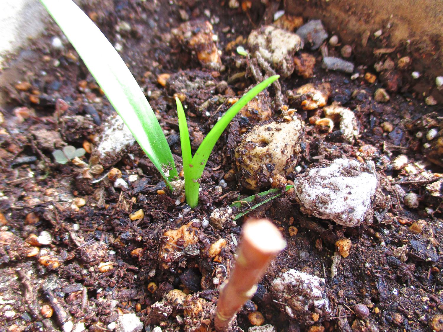 2球植えたササユリの球根の片方が芽がでなかったので