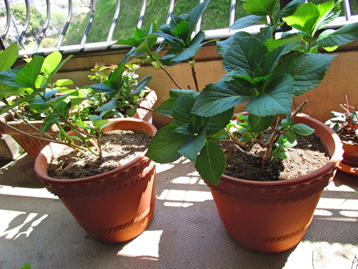 アジサイの鉢の草取りをしました。