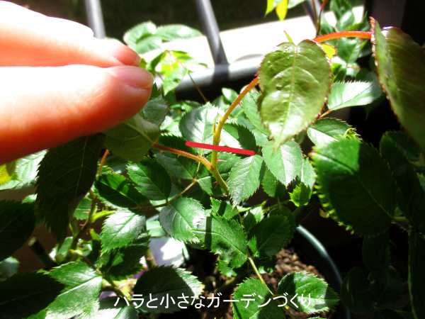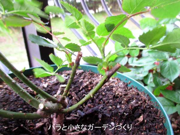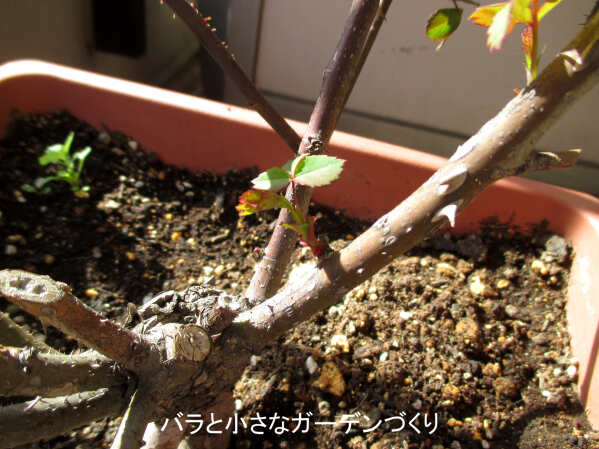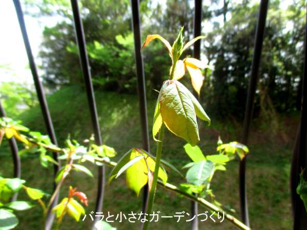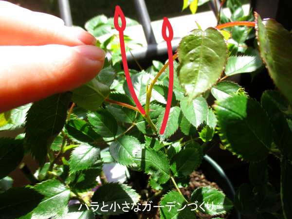 バラの蕾は、ぐぐっと長く伸びだした枝の先につきます。ところが──