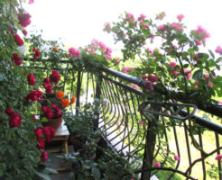 バラの蕾と<はんぶんこ寄せ植え>のその後「あいびーのベランダ・ローズガーデン」2021年4月初旬
