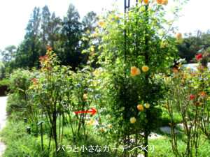 どんな演出をするにしても、必要なのは枝の長さです。なので、つるバラの場合はシュート処理しません。そのまま長く伸ばすのです。