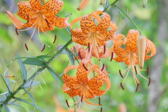 オニユリは、グアム、中国、朝鮮半島、日本に自生するユリです。日本では北海道から九州の広い地域でみられ、中国からの帰化植物ともいわれています。