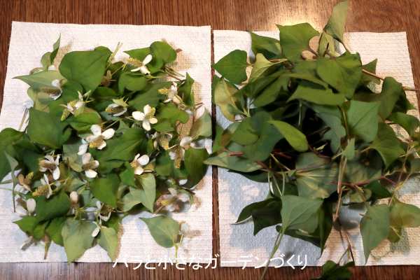 葉の悪臭は浸け置き時間を長くすることで薄れていきます。なので、花も葉も一緒に摘んで使うことをオススメします。