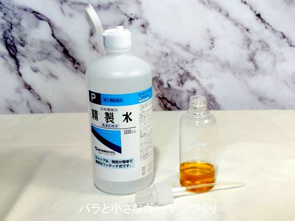 2、チンキを精製水で3~4倍に希釈する
