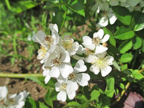 1、ロサ・ムルティフロラは房咲きする園芸品種の親