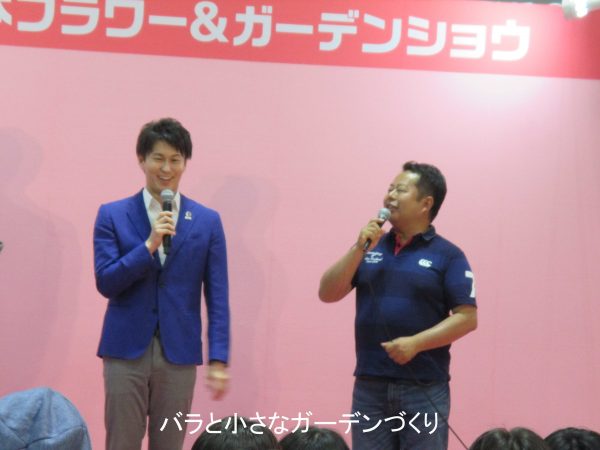 奥まったところに設えられた「花コミステージ」ではさまざまなイベントが開催されました。わたしは、20日の14時~行われた横浜ローズウィークのアンバサダー三上真史さんと横浜イングリッシュガーデンのスーパーバイザー河合伸志さんが出演する「横浜ローズウィーク」のPRイベントに参加してきました。「横浜ローズウィーク」は、今年から開催されるバラのイベントです。