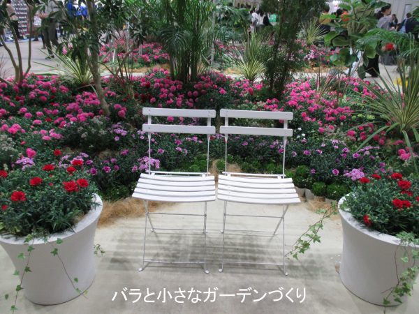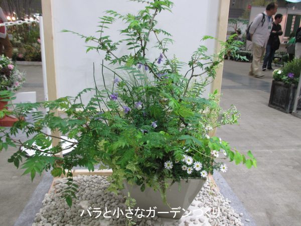 ガーデニングコンテストに割り当てられたスペースも、そう広くありません。でも、すぐに身近に取り入れられるサイズのとても現実的な作品が適度に展示されていて、好感が持てました。(「国際バラとガーデニングショウ」のガーデニング作品は、ほとんどがプロの技術の粋を凝らしたもので、観て楽しめるけれど、数が多すぎて少し疲れました^^;)
