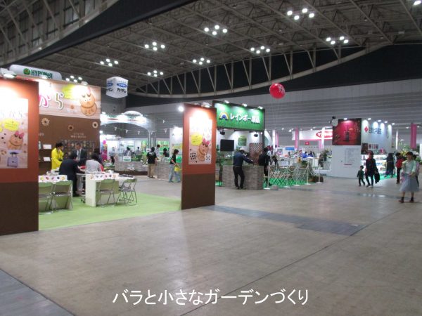 会場は、いくつものブースに仕切られています。上の写真でいうと、手前からタキイ種苗、レインボー薬品、住友化学園芸のブースになっています。