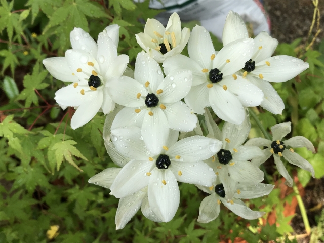 でもこの先、オーニソガラムが咲き進むと雰囲気はグッと良くなりました。そういえば思い出したんですが、オーニソガラムって値は張るけれど長もちする高級花材だったなぁと。切り花の値段を調べてビックリ! 楽天市場で1本500円以上していました!