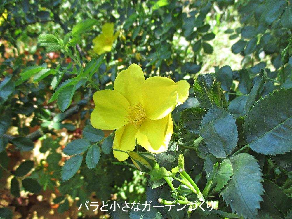 ▲中近東原産の原種バラ「ロサ・フェティダ」(Rosa foetida)