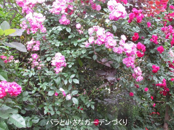 大型シュラブ樹形なので、つるバラとして使える品種