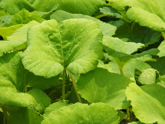 ▲フキの葉。フキノトウの周りには小さいサイズのフキの葉がある