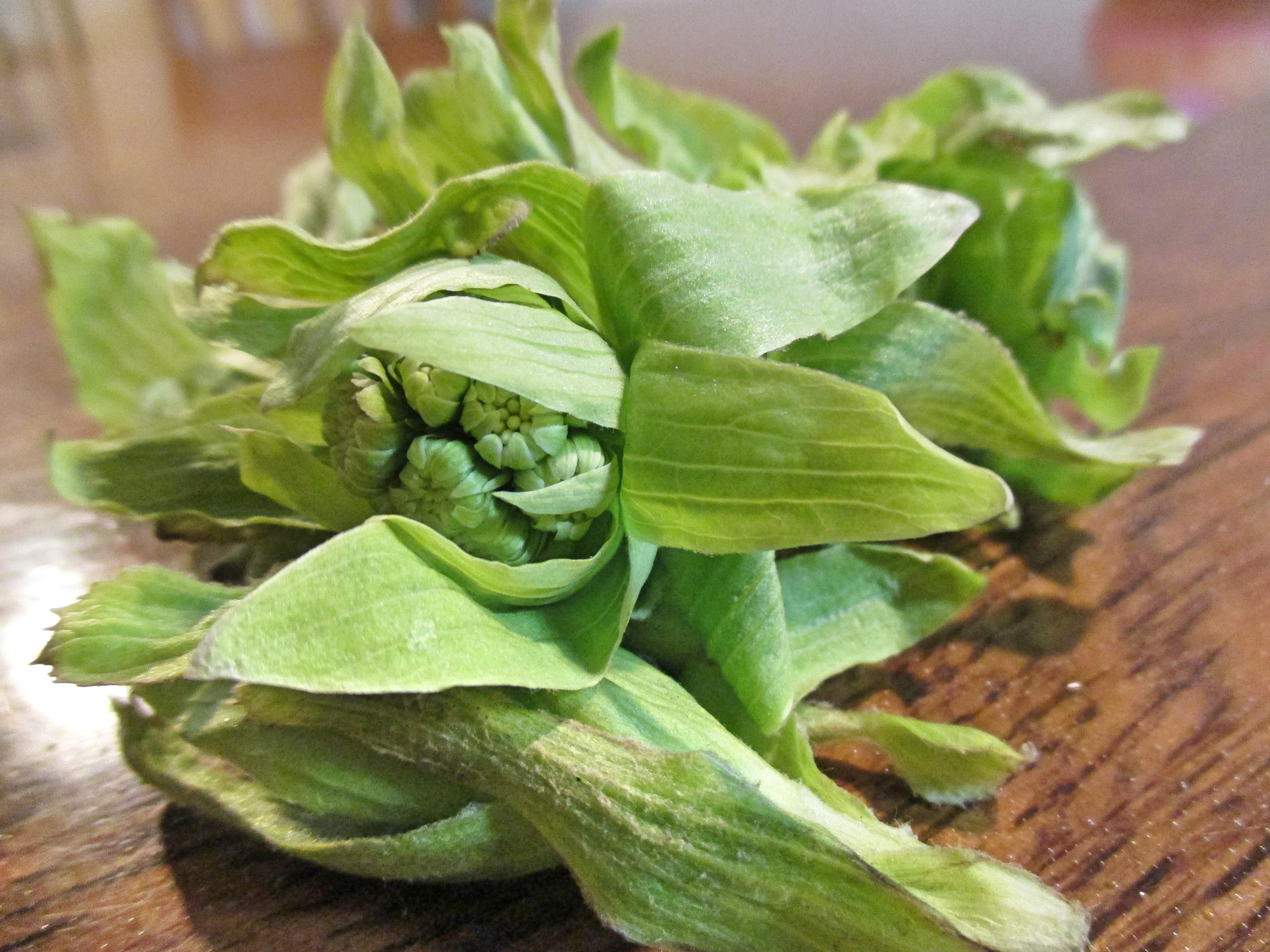 今年みつけたフキノトウは全部で9本。これだけあれば、たっぷりフキノトウの香りが堪能できます。なんともいえない、ふくよかな香りと、ほろ苦さ。そして、きれいな黄緑色。フキノトウって本当に「春が来た!」って思わせてくれる野草ですよね。
