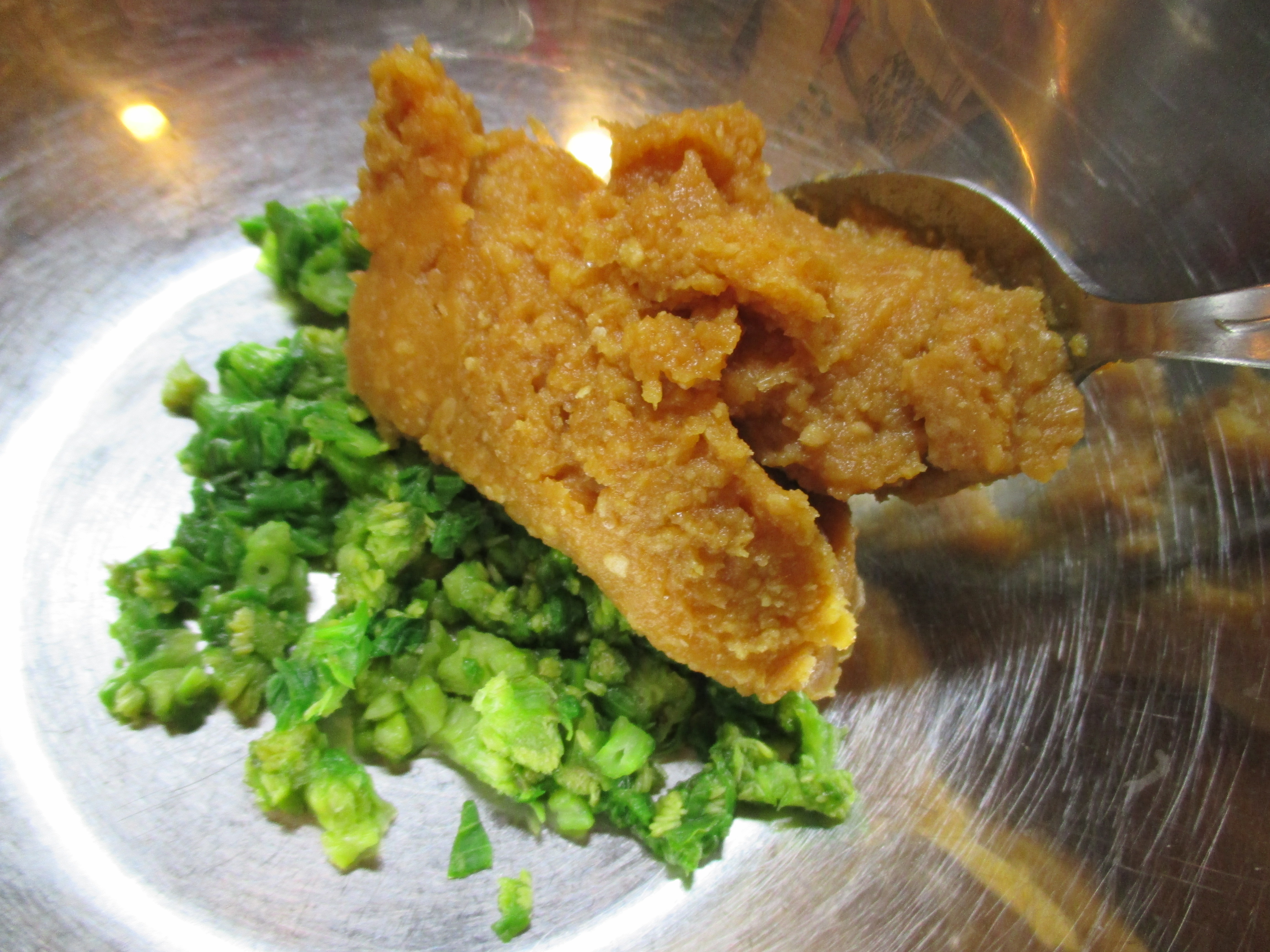 そこで、フキノトウ入りの味噌を作り置きし、気が向いたときにいつでも味噌汁に使えるように保存しておくことにしました。この方法がいいかどうかは分かりませんが、とりあえずレッツ・チャレンジ!