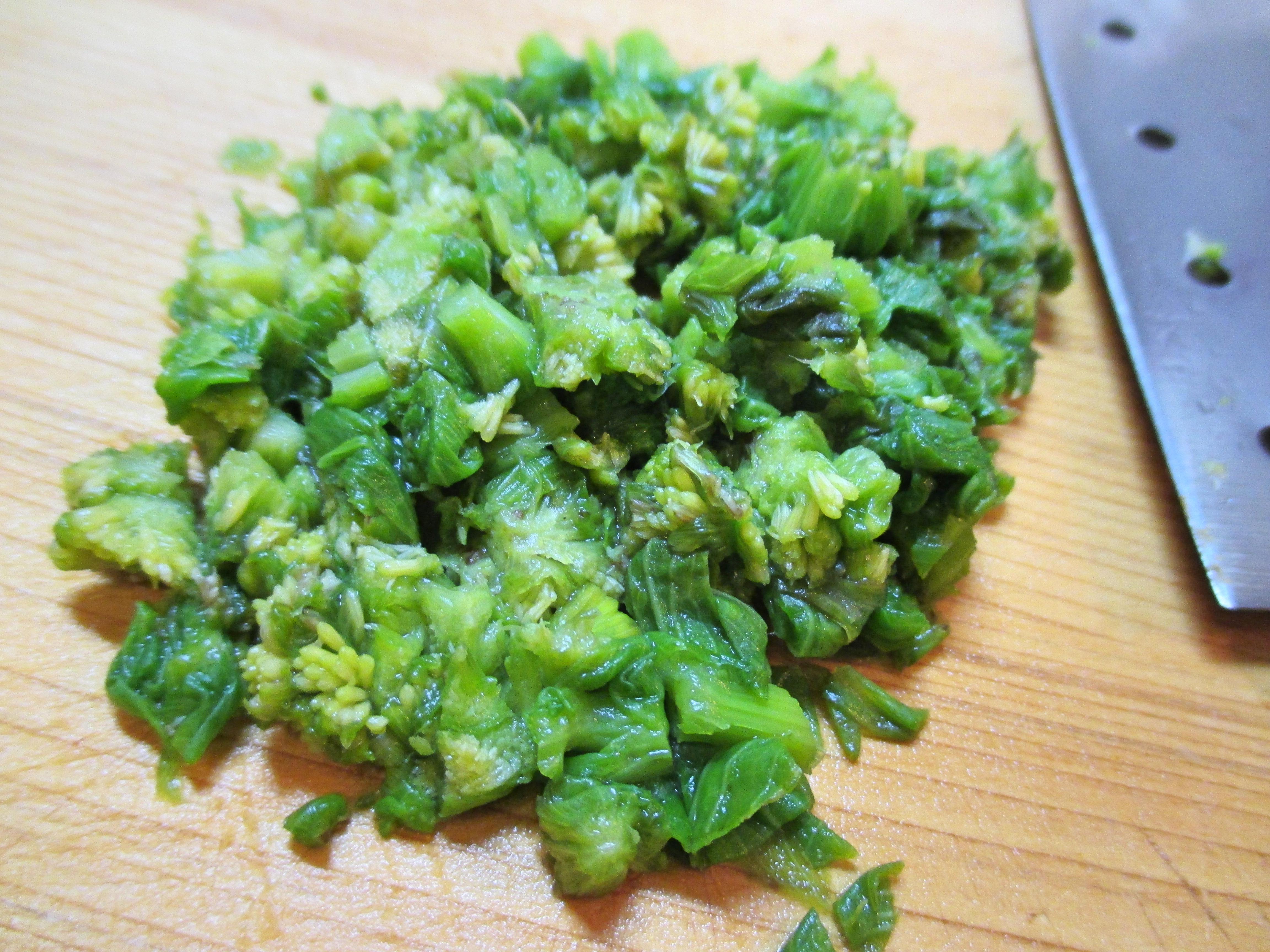 4、キッチンペーパーで水気を取ったら、ざくざく粗みじんに切る