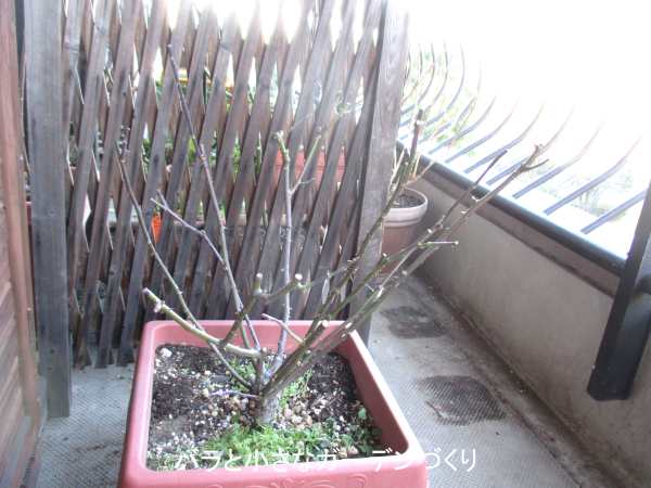 地植えなら株元から1m以下に、鉢植えの場合は鉢の高さを差し引いて、高くても株元から70cmまでの樹高に冬剪定したいですね。