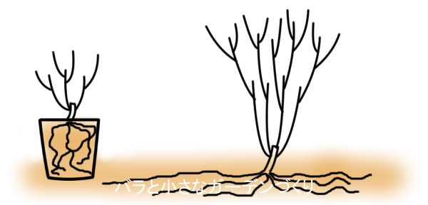 理由は、根張りの違いにあります。地植えのバラがどんどん根を張りたくさんの養分を得ることができるのに対して、鉢植えバラは鉢の中だけしか根を張ることができません。
