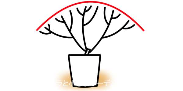 剪定の「ポイント3」は、株全体の形をドーム型に整えることです。ドーム型に整えることで、どの枝にもまんべんなく日光が当たり、そろって生長することができます。