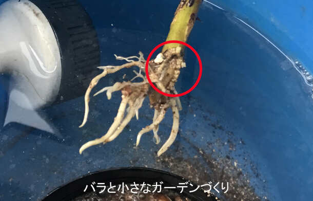 の株元に大きな塊があったら! これは根頭がん腫病という、バラにとっては怖い病気です。