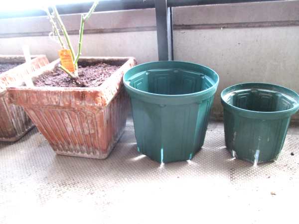 ▲左から10号角鉢、8号スリット鉢、6号スリット鉢