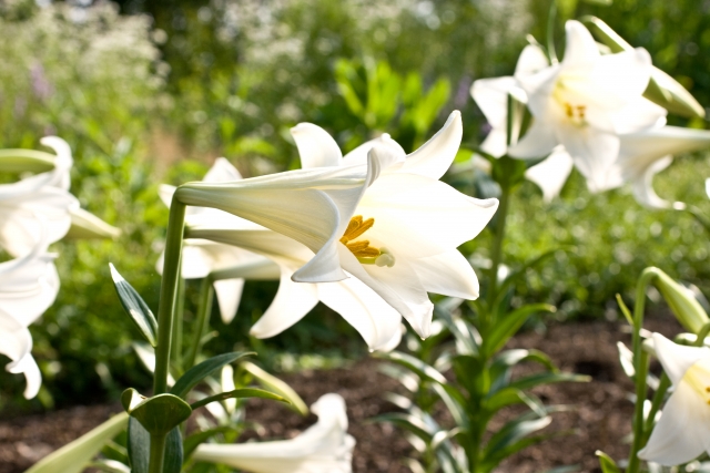 れまで紹介したように、ユリにはいくつもの品種がありますが、テッポウユリ、カノコユリ、オニユリなどは原種でも育てやすいユリです。園芸品種はオリエンタルハイブリッドを含めてどの品種も比較的育てやすく品種改良されています。庭植えなら、ほぼ植えっぱなしで数年間は毎年花を楽しめます。鉢植えでは、毎年新しい土に植え替えなければいけませんが、基本的に育てやすいユリです。