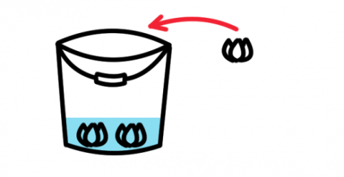 バケツなどに消毒薬を入れ、30分間ユリの球根を漬けこんだ後、植えこみます。