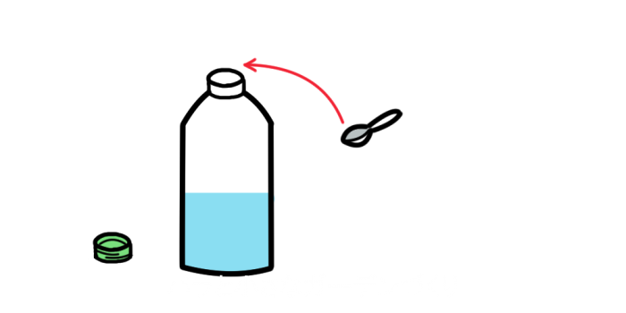 1000mlになるよう、水を足して出来上がり。よりきちんと溶かしたいなら、ここでも蓋をして軽く振ります。