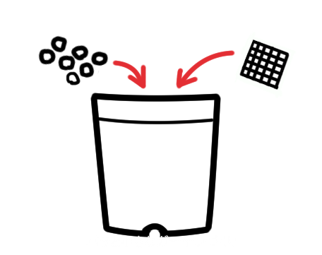 鉢増しのしかた1、鉢底ネットと鉢底石を入れる